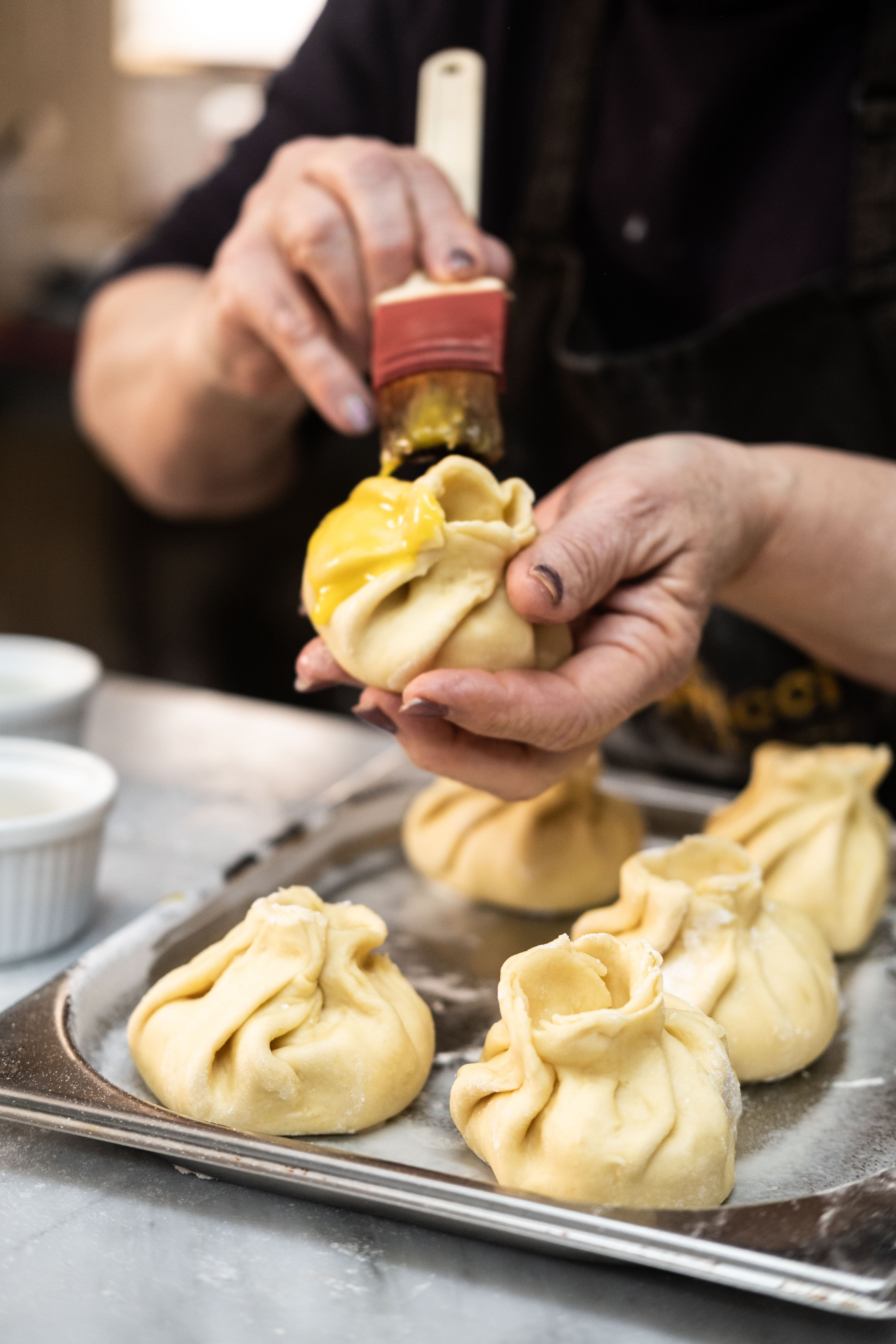 Okay, so basically the filling is fresh cheese, sheep’s milk grated cheese and eggs. That’s it. No salt, no additives, nothing. Just the pure ingredients, and obviously the pastry. You have to knead the dough really quickly, since once the yeast is added, the dough starts to rise. Otherwise, it will feel tight and tough, and won’t stretch properly.